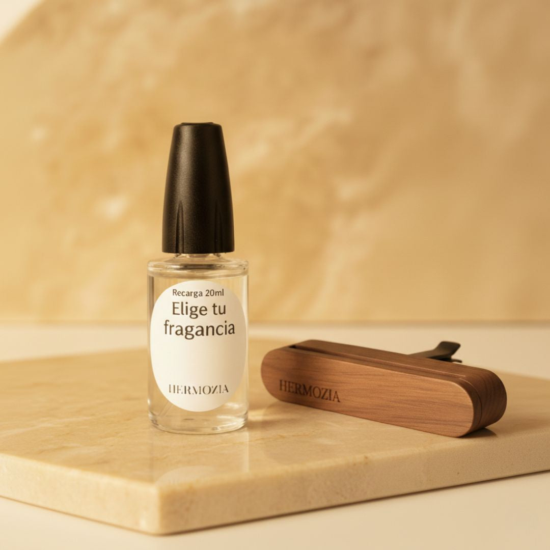 Cada difusor se ofrece con una recarga de fragancia a elección (20 ml), para que puedas disfrutar de tu aroma favorito mientras conduces. Se fija fácilmente a la rejilla de ventilación y funciona de manera natural, sin electricidad ni mecanismos complejos.