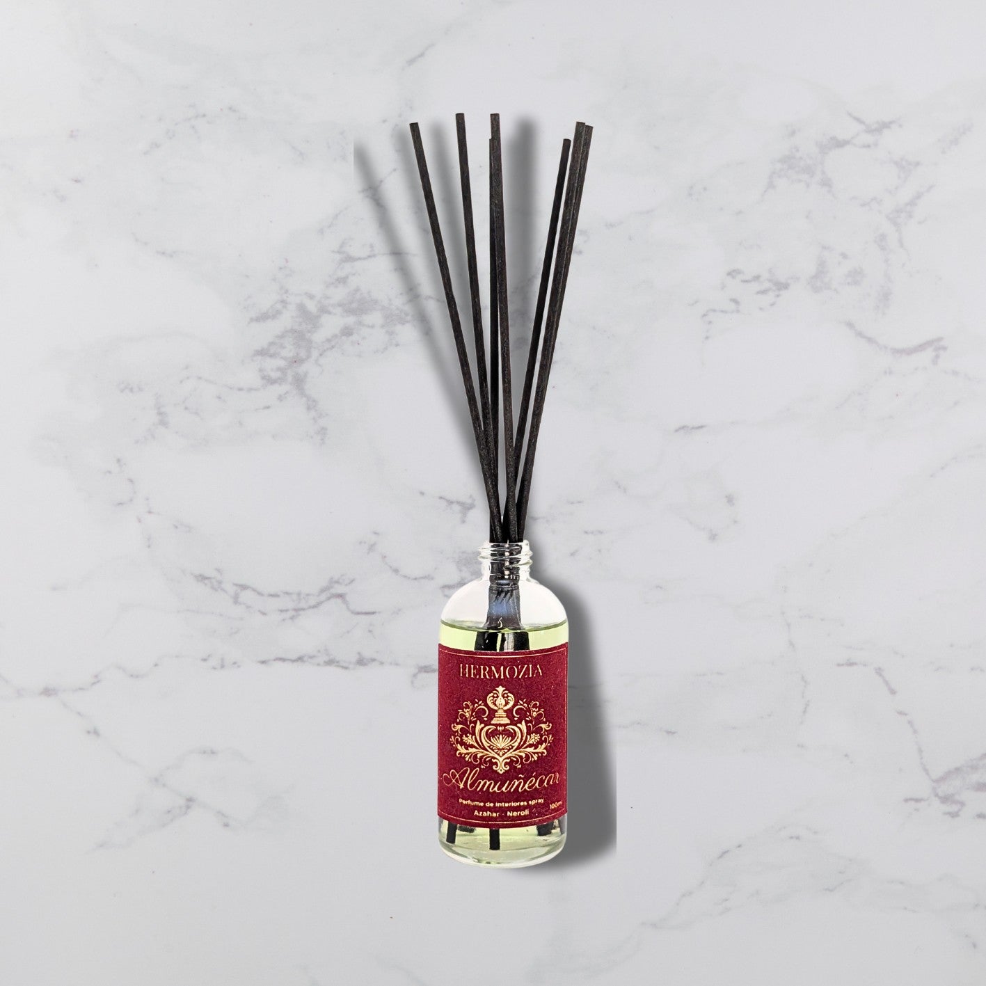 Fragancias elegantes, duraderas y envolventes, presentadas en un frasco de diseño con varillas difusoras. Fragancia: Ámbar del Sol.