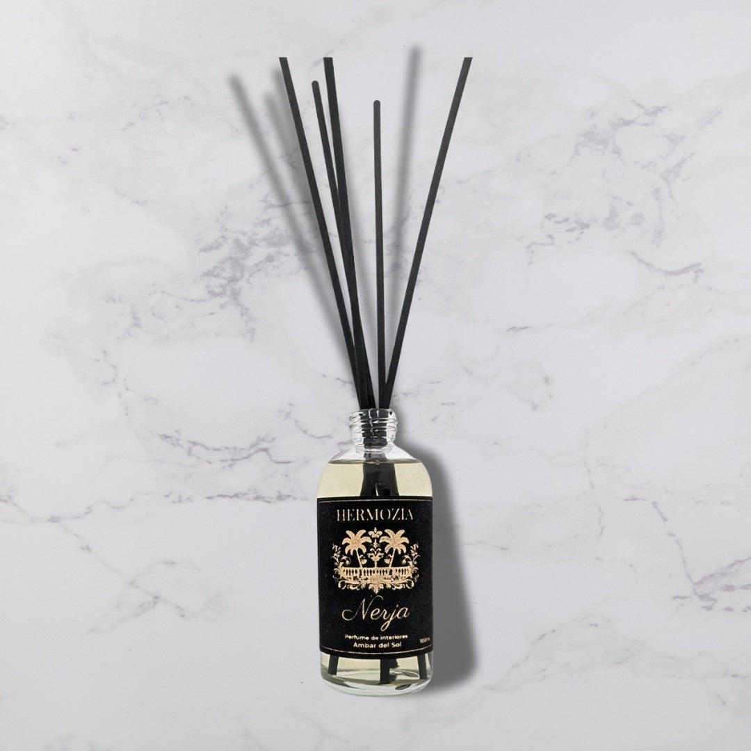 Un perfume elegante para el hogar con varillas difusoras, inspirado en la esencia de Nerja y la costa del Sol.