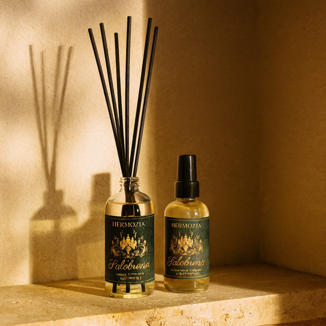 Un perfume elegante para el hogar con varillas difusoras, inspirado en la esencia de Salobreña y la costa Tropical.